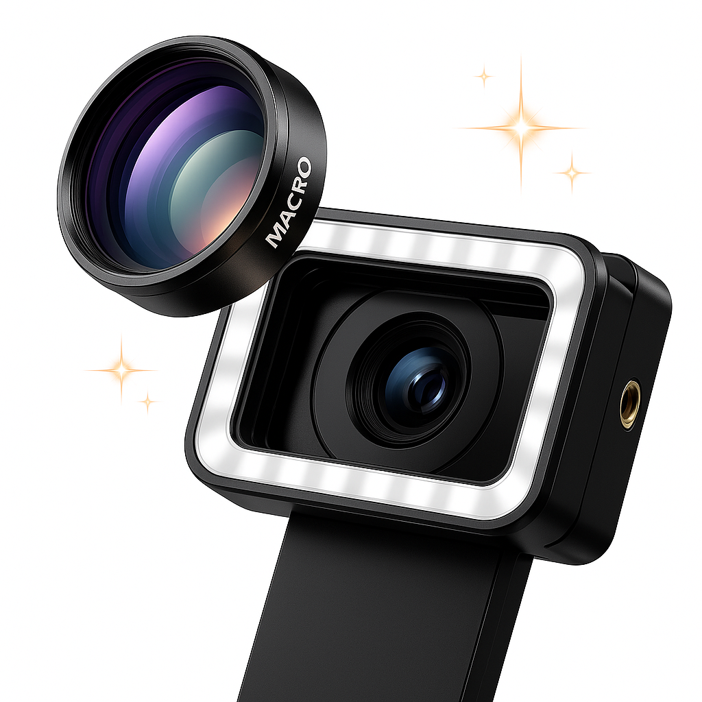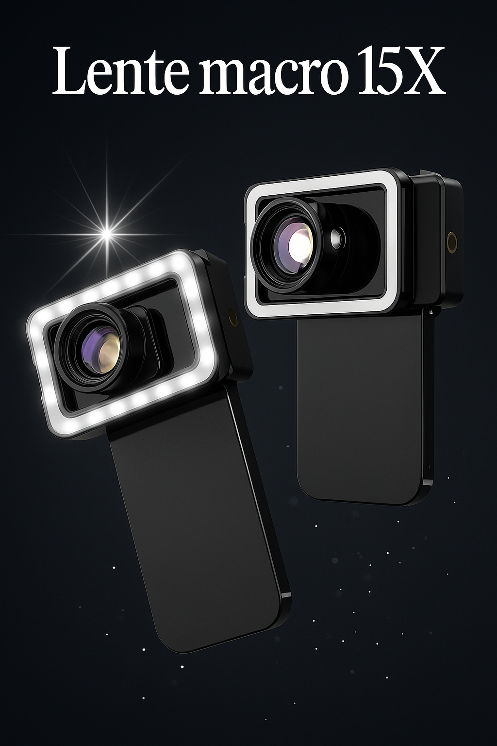 Lente súper macro HD 15x mejorada con luz para todos los teléfonos inteligentes, permite tomar buenas imágenes como una SLR.